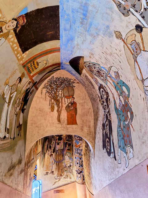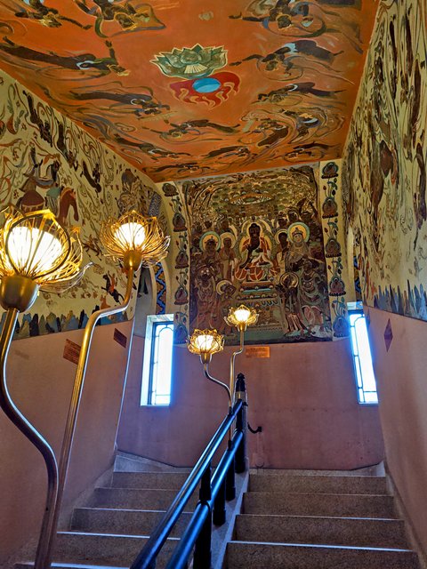 壁全体に描かれた壁画は、ところどころに配されている蓮の花を象った照明の優しい光に反射されてとても美しく、まるで異国にいるようでした。