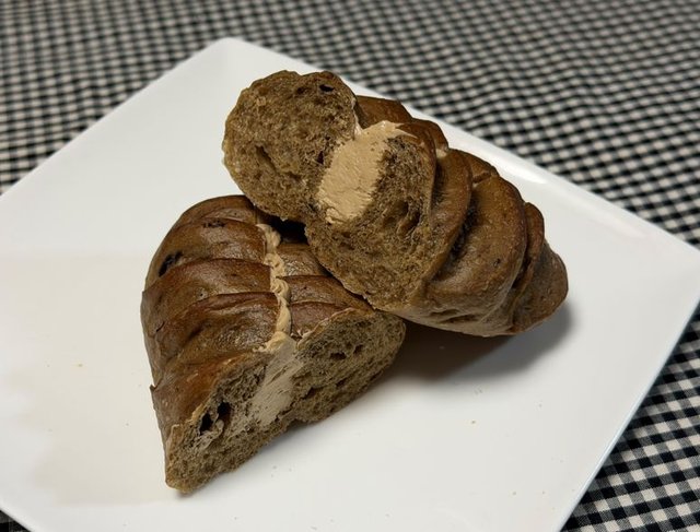 ほうじ茶を練り込んだパンにビター感のあるカフェホイップがサンドされています。