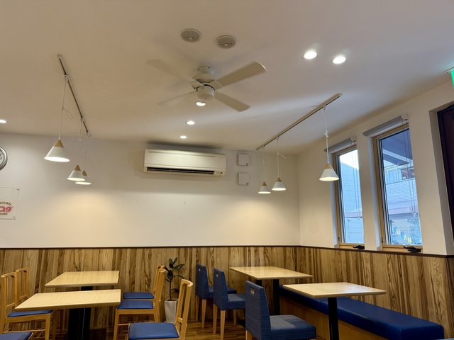 店内はテーブル席が中心で、明るく清潔な印象。ご家族経営のアットホームな雰囲気のお店です。
