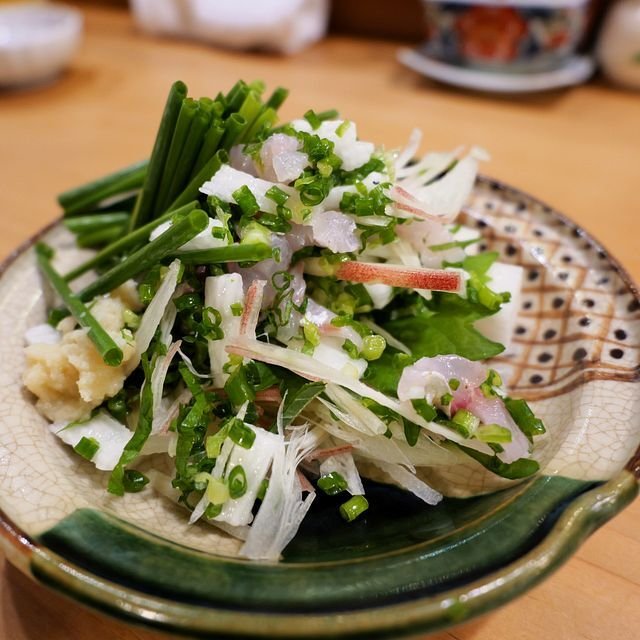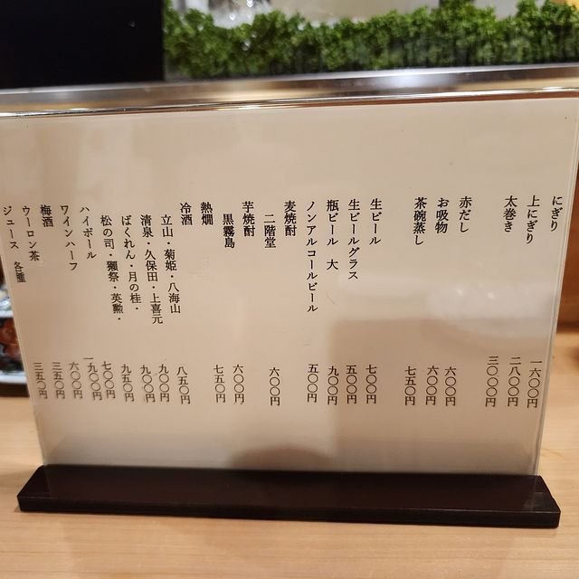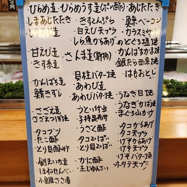 カウンターの端っこの壁に本日のミニ白板が掲げてあり、「うわ!見えねえ!」と目を細めていると、おねえさんが持ってきてくれました。こういうお寿司以外アテ類がめっちゃ豊富。お値段が無いのがドキドキ!なのですが、ま、一皿¥1500~2000ぐらいで想定していれば、支払い時にビックリしないと思います。