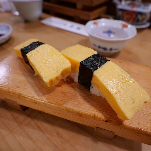 「たまご」¥350は肉厚でちゃんと江戸前的に甘い味付けの一品でした。玉子焼きは圧倒的に甘くないダシ巻派!なのですが、お寿司で〆るのは甘いほうが気分ですな。いやー、喰った喰った。めっちゃ大大大満足。