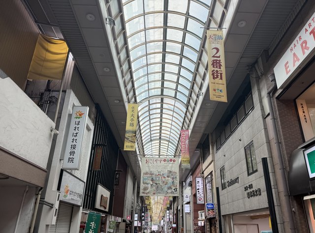 地元民御用達、伏見区の大手筋商店街。雨の日でも快適で、京阪伏見桃山駅・近鉄桃山御陵前駅からすぐという好立地です。