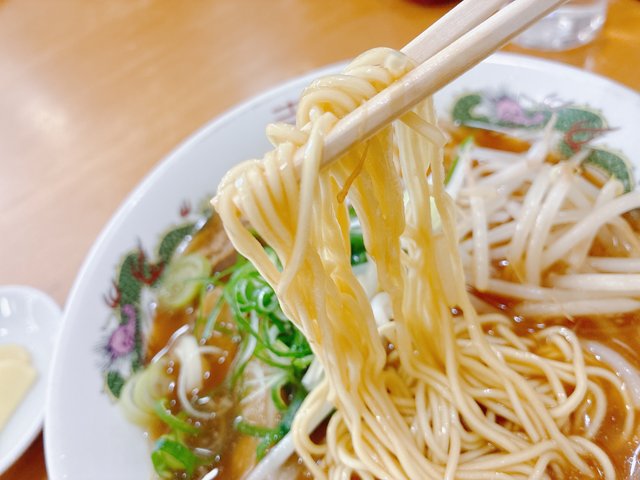 中細のストレート麺は、少し柔らかめでスープとの絡みが抜群。ツルツルとした喉越しが心地よく、シャキシャキのもやしやネギの食感が絶妙なアクセントになっています。これぞ毎日でも食べたくなる、飽きのこない極上のラーメンです。