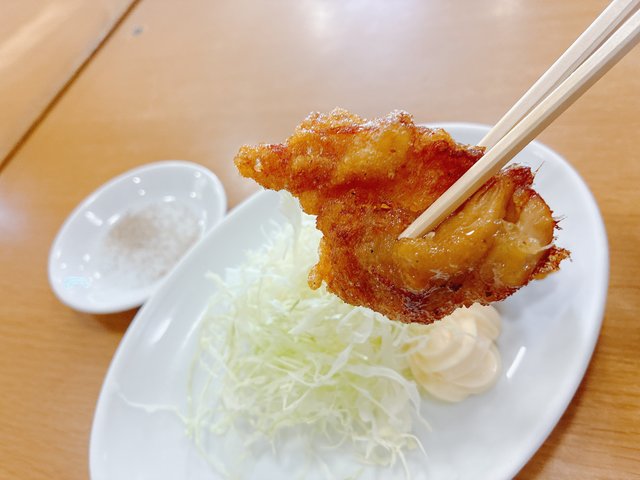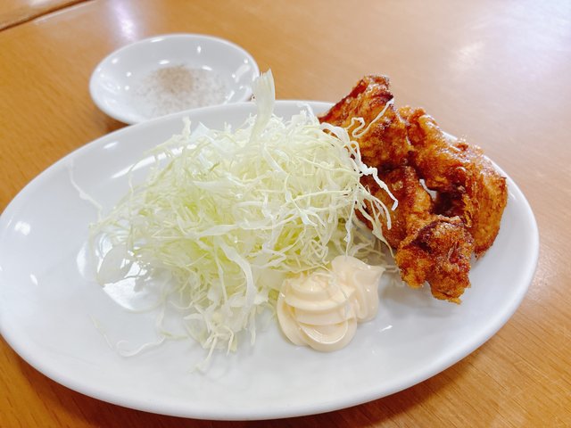 お肉は驚くほど柔らかく、鶏肉の甘みとしっかりとした下味が口いっぱいに広がります。このジューシーな唐揚げを白ご飯にバウンドさせてかきこむ瞬間は、まさに至福のひととき。キャベツとマヨネーズでさっぱりとリセットしながら、あっという間に完食してしまいました。