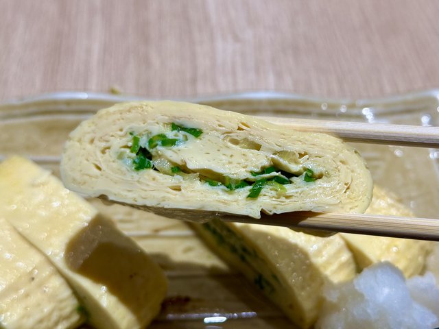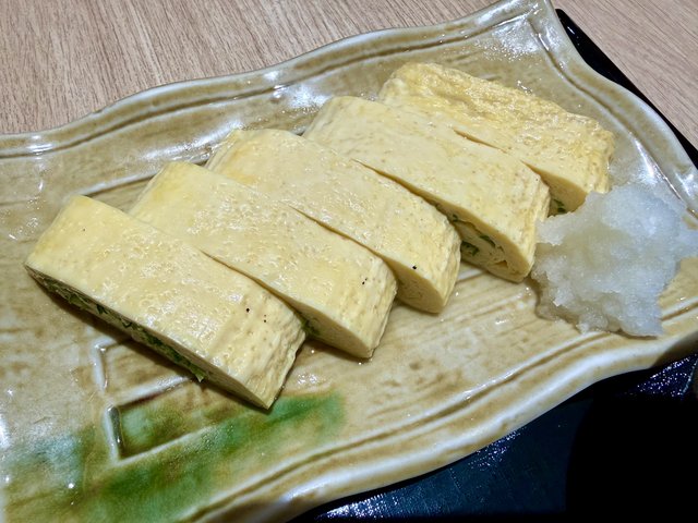だし巻き玉子はきれいに焼き上げられており、玉子3個分ほどありそうなボリューム。大根おろしが添えられているのもうれしいポイントです。
