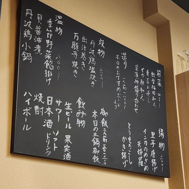 京町家リノベーション系なお店にありがちな、店の奥に向かってずらーっとカウンター席が8席ほどですかねえ。どう見ても居酒屋ではない設えなのだ。お料理は黒板メニューがありまして・・・・