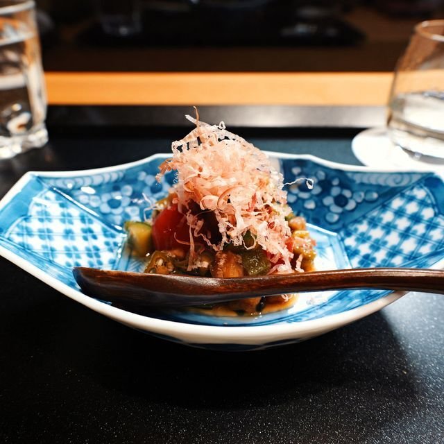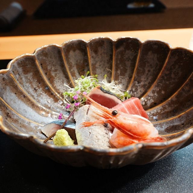 こちらはなんでしたかねえ。鰹のタタキ、鮪、甘海老、めっちゃ美味しかった酢で〆た鰯、鯖。もう一貫白身があったかもですが、このアングルなので見落としております。いやー、楽々期待を越えてくる~!というような。