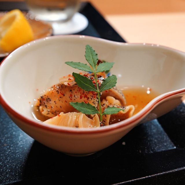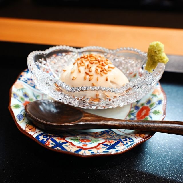でお料理六品目はお酒のアテで「蓮根入り胡麻豆腐」¥400なり。こういうのまで2皿に分割。めっちゃ可愛いサイズなのですが、ちゃんとお酒に寄りそう一品。