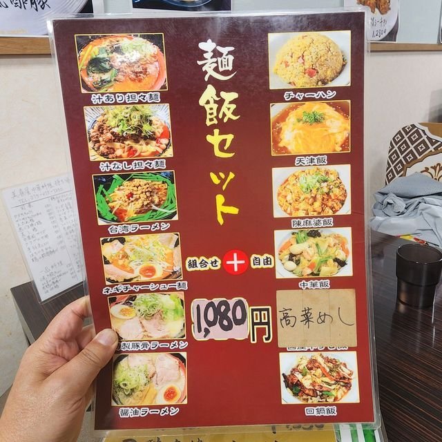 量がありそうな麺類+ご飯物セットを1つ頼めばいいんじゃないのん?ということに。今どき税込み¥1080なのだ、頑張っておられますなあ。先客は常連さんと思しきおじさん1名、おばさん1名なのですが、お二人とも麺類+ご飯物セットを注文されている人気ランチメニューなわけで。で、相方に今日の気分はどれ?と確認したら、「汁無し担々麺と炒飯!」と速攻で決まるのだ
