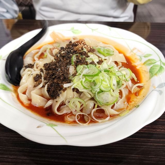 更に二品目の「汁無し担々麺」なり。麺は幅広できしめんぐらいの幅でむちむちした手延べ麺?を採用。下に肉餡が隠れていて、黒い刻んだのは高菜のような漬物的なモノ。タレはラー油量も意外に控えめで、想像よりぐっとあっさりしています。