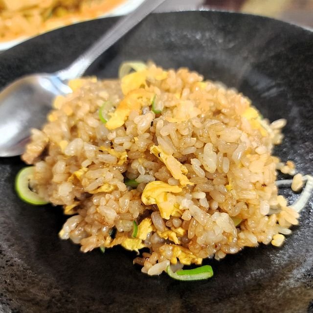 で、更にチャーハン登場。¥1080セットについているので小盛りなのですが、お味は刻みチャーシューと中華醤油がガッチリ効いたコクのある味で、なかなか美味しい一品。大盛りでもすいすい食べられそう。