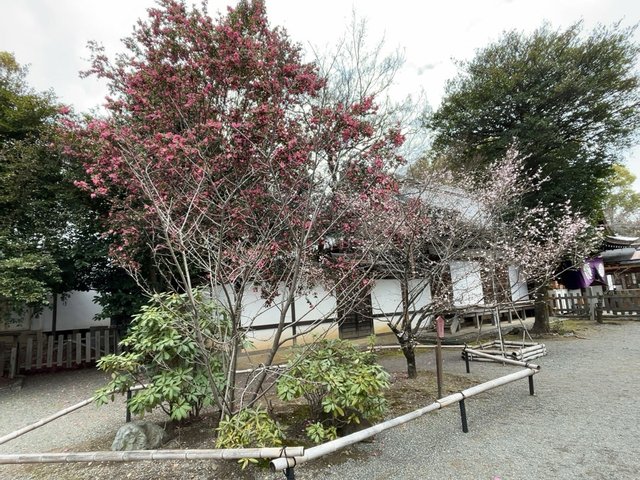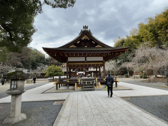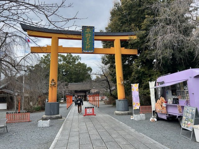 北区平野、通称『桜の神社』として知られる京都屈指の桜の名所『平野神社』。境内には約60種、400本の桜の木があり、神紋は桜。この日は近くにある北野天満宮とともに初詣にやってきました。北野天満宮の北門を出ると、すぐ平野神社が見える位置関係。