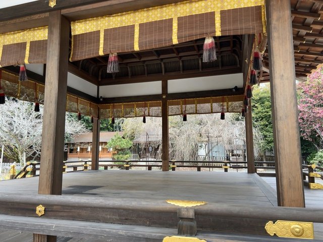 春には『平野の夜桜』、4月10日開催『桜花祭』が催され、満開の桜の下をふれ太鼓を先頭に露払の鬼、天平の織姫、流鏑馬列、御鳳輦、元禄の染織娘、王朝公家による東遊・曲水遊など、華やかな王朝の雅がよみがえる天平装束の時代列が社前を彩ります。ご参考に。