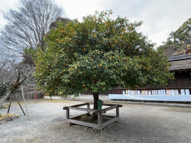 思わず見とれてしまうほど、たわわに果実をつけた橘。
