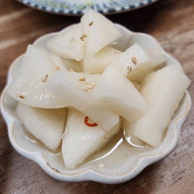 野菜系は喰っとけ!なので、注文した自家製の「大根のピリ辛酢醤油漬け」¥200がてんこ盛りでびっくりしつつ。健全系な良きアテです。