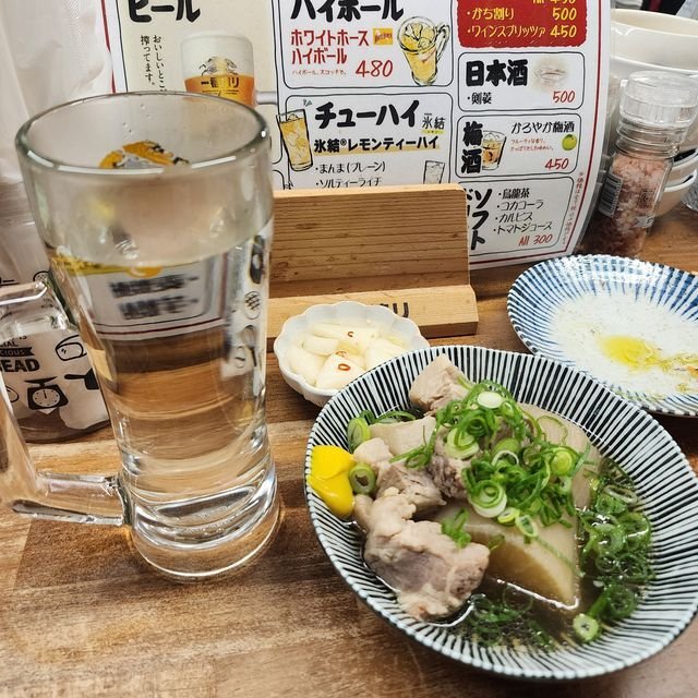 ワタシも「芋焼酎お湯割り」にスイッチし、一緒に「大根と豚肉の煮物」たしか¥500ぐらい?をお願いしたら豚が超とろんとろんでウマーでした。