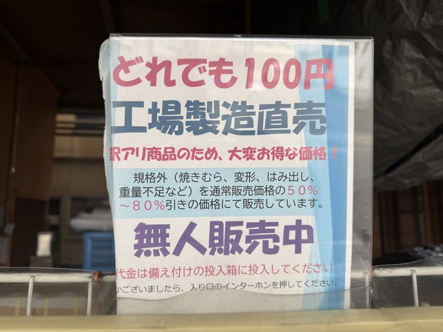 一見すると普通の工場ですが、よく見るとシャッターが半分開いています。実はここ、規格外の商品を販売する「無人直売所」になっているんです。