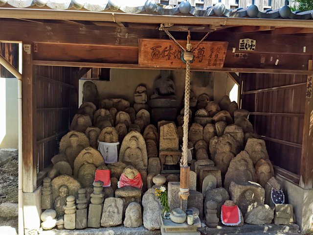 境内の北端には鎌倉時代に作られたといわれる加茂大明神の石塔や百体地蔵尊などが並んでいます。
