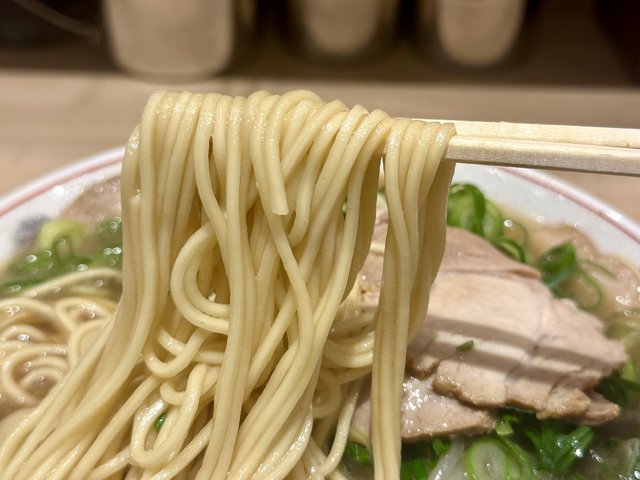 澄んだ旨味たっぷりの豚骨清湯スープに、コクのある伏見の醤油。老舗・近藤製麺の中細ストレート麺との一体感も見事です。チャーシューは豚の旨味が濃く、厚みがあり食べ応え十分。