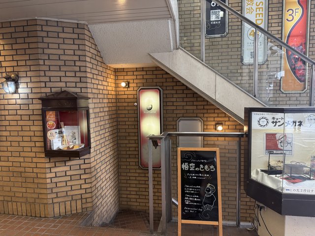 階段を下り、少し奥へ進むと店舗の入口があります。行列ができることもある人気店なので、オープン時間か13時以降の来店がおすすめです。