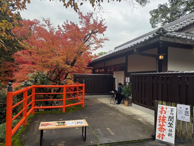 境内にあった未使用の休憩所をリノベーションし、2025年4月に茶所として20年ぶりに開所したのが「閑坐(かんざ)」です。開所直後から話題となり、今回が初めての紅葉シーズンということもあって大きな期待が寄せられていました。
