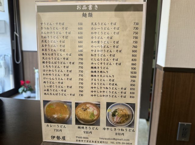 こちらがお品書き。すうどん・そばは530円からで、天ぷらや肉、たぬき、玉子、カレーなど、定番のトッピングが揃います。丁寧にひかれた出汁が味の決め手です。