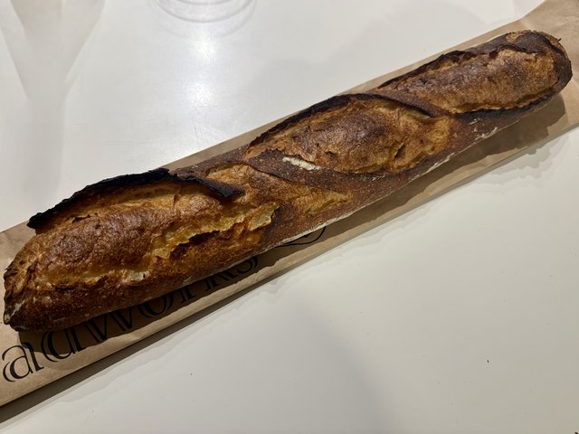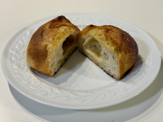 リベイクすると、表面はパリッと香ばしく、中はふんわり。キタノカオリと石挽粉を使用した生地は風味豊かで、単体でも食事に合わせても成立する完成度。
