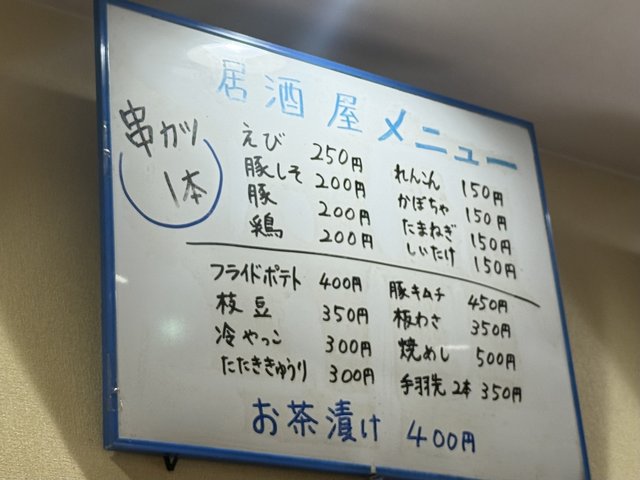 とんかつだけでなく、居酒屋メニューとして串カツなどもあり、串揚げとおばんざいで一杯楽しむのも良さそう。
