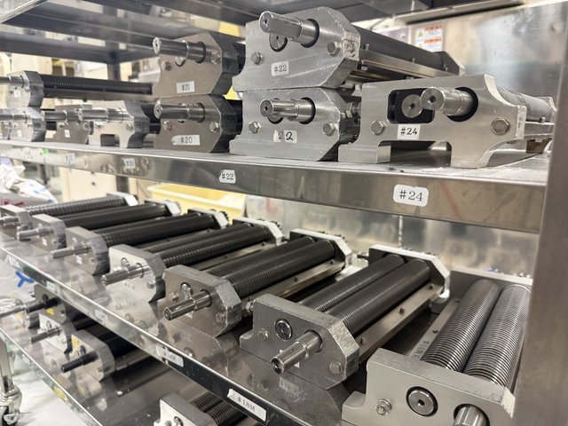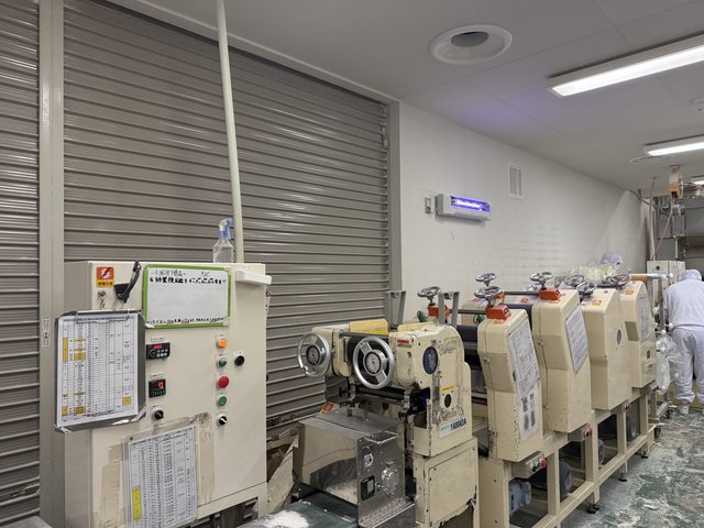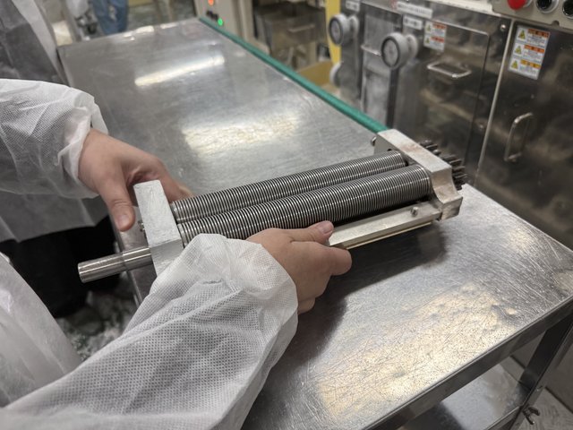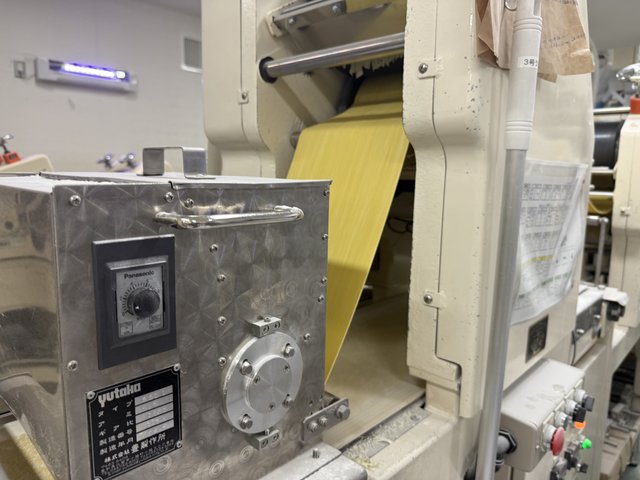 ここで使われているのが、強度の高い「ブラックロール」と呼ばれる製麺ロール。温度変化による歪みが少なく、安定した品質の麺を作ることができます。一般的な機械の3〜4倍の価格で、1ラインあたり約1億円もするそうです。