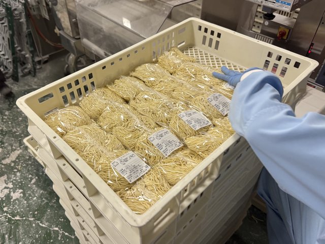袋詰めされた麺は、番重に丁寧に並べられ、製麺としては最終形へ。