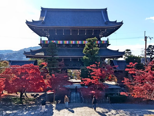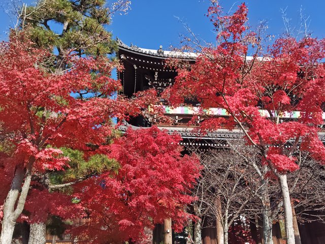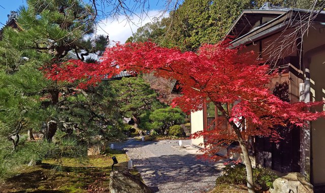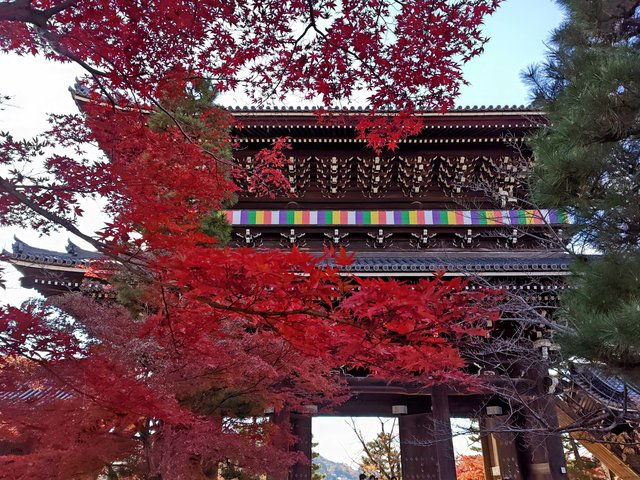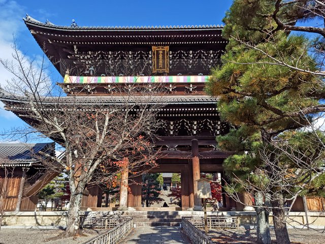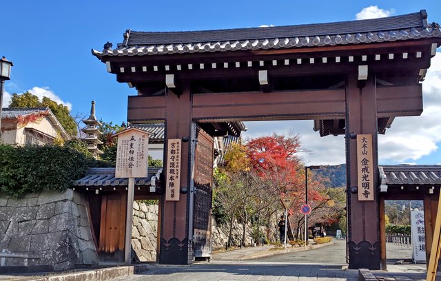 山門の周囲にもきれいな紅葉。でもすでに葉が落ちた木もあります。