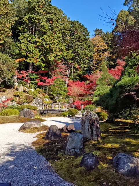 大方丈の南庭は「紫雲の庭」を中心とした枯山水庭園で、北庭は「ご縁の道」と呼ばれている小径で回遊できる池泉庭園となっています。