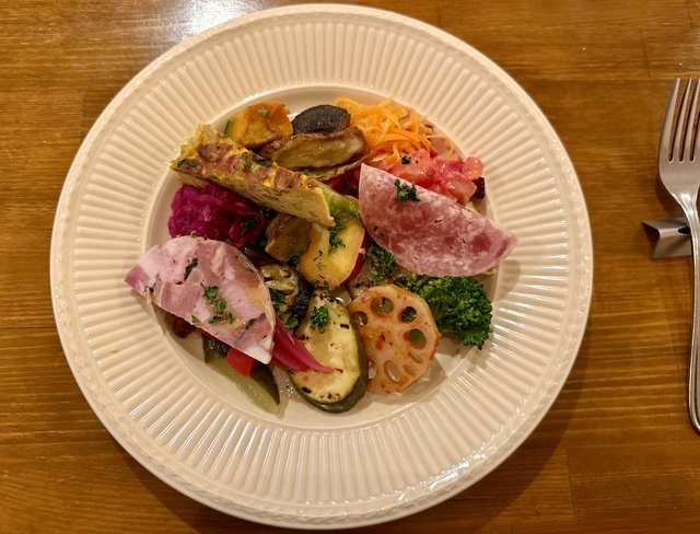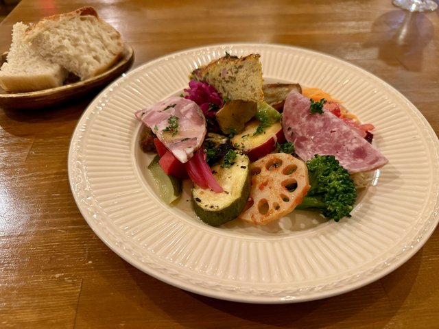 まずは前菜。彩り豊かな野菜をふんだんに使った盛り合わせで、見た目からして期待が高まります。