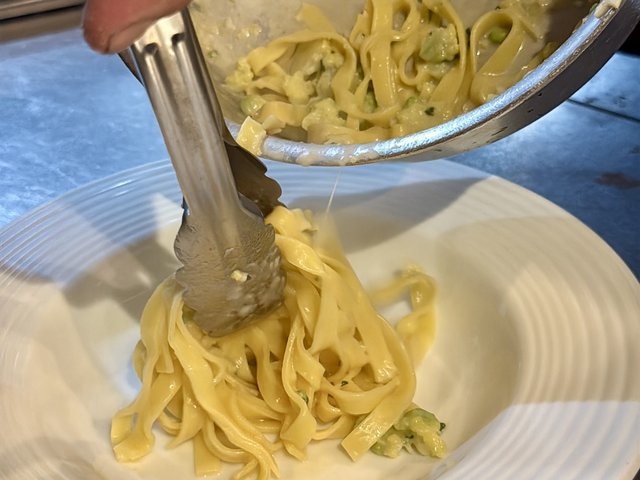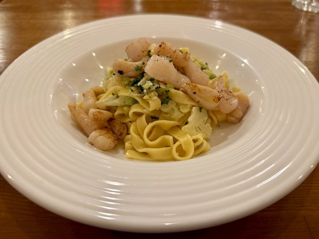 当日の朝、市場で仕入れた長崎県産の真珠貝と刻んだカリフラワーを使った、アンチョビバターのタリアテッレです。