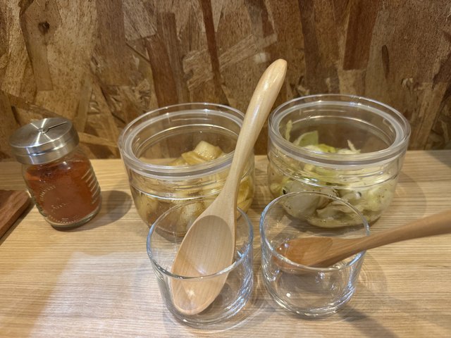 おなじみの自家製アチャールも健在。淡路産玉ねぎの醤油ピクルス、キャベツのピクルスも取り放題。しっとり感とシャキシャキ感の対比も心地よく、口直しとしてはもちろん、カレーの旨みを引き立てる名脇役です。