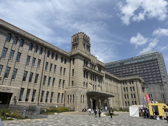 御池通沿い、河原町通と寺町通の間にたたずむ京都市役所。歴史ある洋館建築で、京都を代表するランドマークのひとつです。
