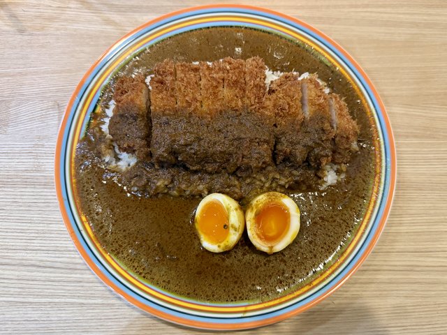今回は人気No.1になりそうな「京都ぽーくロースカツカレー」を、スパイス玉子付きで注文しました。