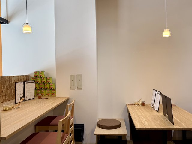 店内は明るく、ウッディでコンパクトな造り。カウンター席が中心で、テーブル2卓を備えた全15席です。お手洗いは西庁舎共用設備を利用します。