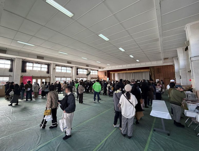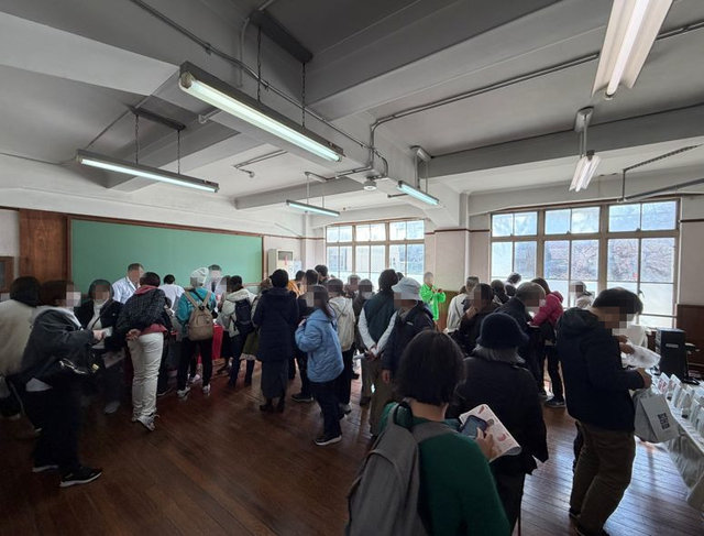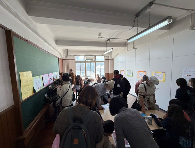 旧小学校の廊下は、かつての子ども達の賑わい以上の混雑でした。