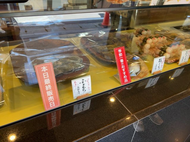 ちょうどシーズンの桜餅やお団子。と言っても、あと1週間ほどで次の和菓子が控えています。さらに、本日最終販売のよもぎふと餅。