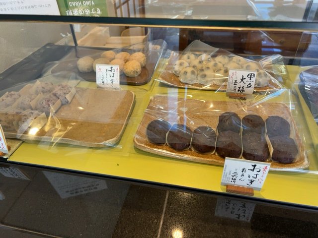 その横に、定番のおはぎ類3種。生菓子・黒豆大福も。