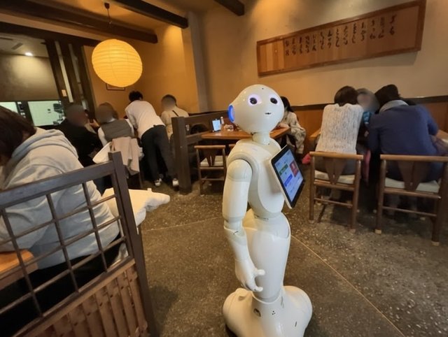 以前にも来店したことのあるお店ですが、前回には居なかったペッパーくんが受付係りを担当。