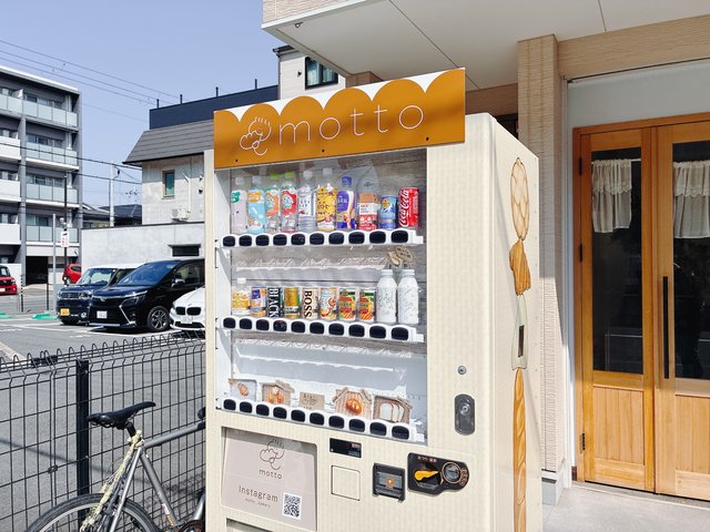 お店の前には、なんとパンとジュースの自動販売機も!営業時間外でも買えるなんて、パン好きにはたまらない心遣いですよね。
