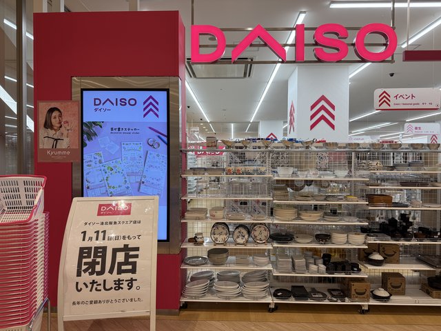さらに、日常使いで重宝されていた100円ショップ「ダイソー 」も、2026年1月11日をもって閉店します。