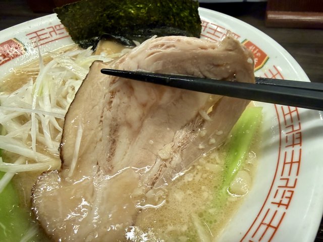 ブランド豚の豚バラを使用しており、スープと一体になって旨みを引き立てます。さすが極王シリーズ、チャーシューもワンランク上の仕上がりです。