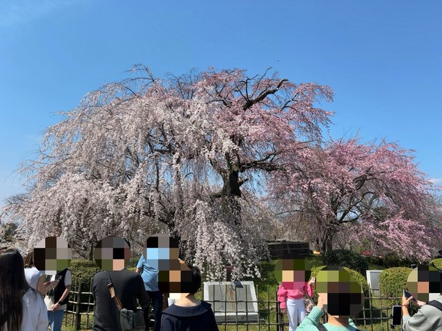 さらに東へ。円山公園のシンボル的存在『祇園しだれ桜』。すでに見頃を迎えていました。満開のもう一歩手前、といった開花具合。