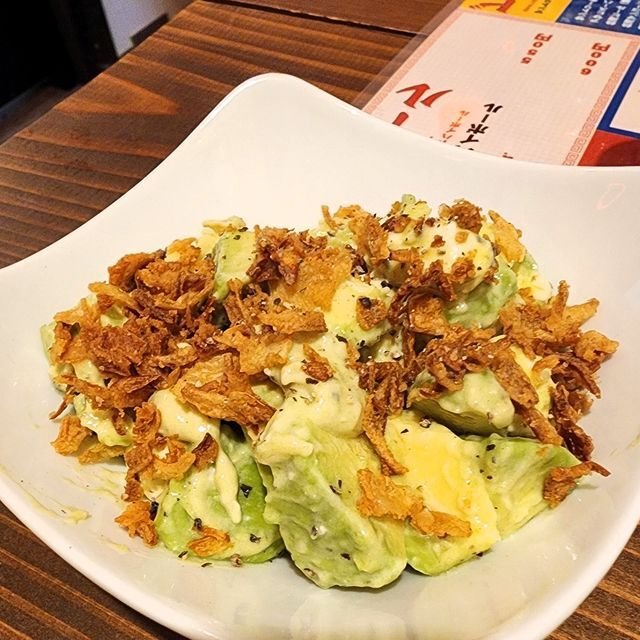 更に野菜系の前菜で、ほのかに温かい一品。「アボガドガーリックマヨ和え」的な一品。アボガドを火を入れたマヨで和えて、ガーリックチップと合わせたホットサラダ的な一品。これまたウマー!なわけで。呑める野菜メニューが嬉しいわけで。