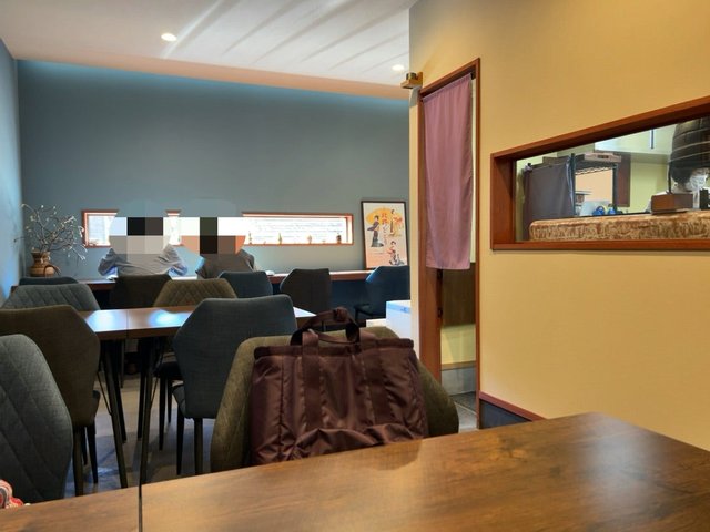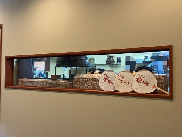 スリットガラスから厨房が見え、ご夫婦でお店を切り盛りされてる様子。