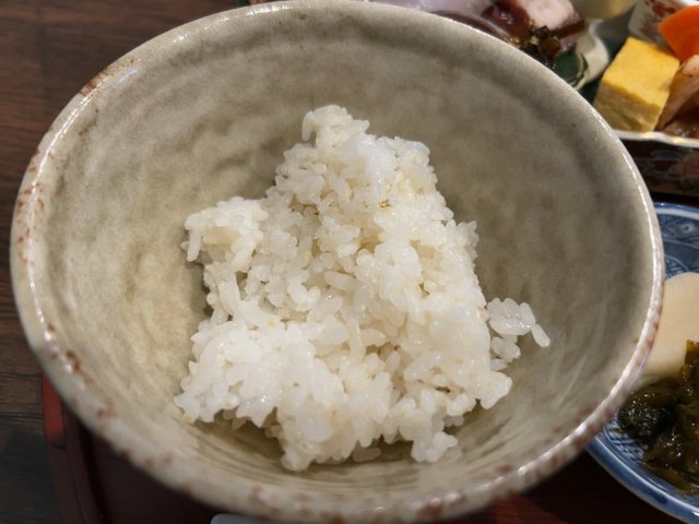 まずはご飯。土鍋で炊いた粒立ち感と適度な硬さ。その食感を意識して食べたくなる美味しさ。もちろん、後でおかわりしました(笑)