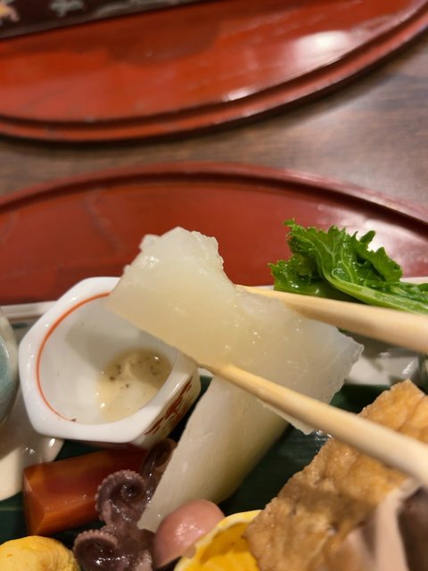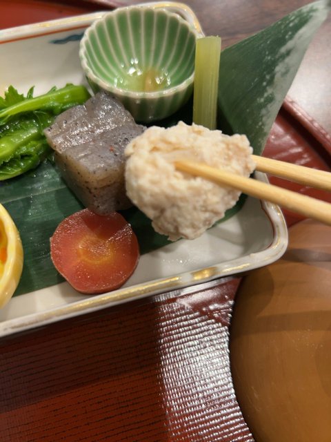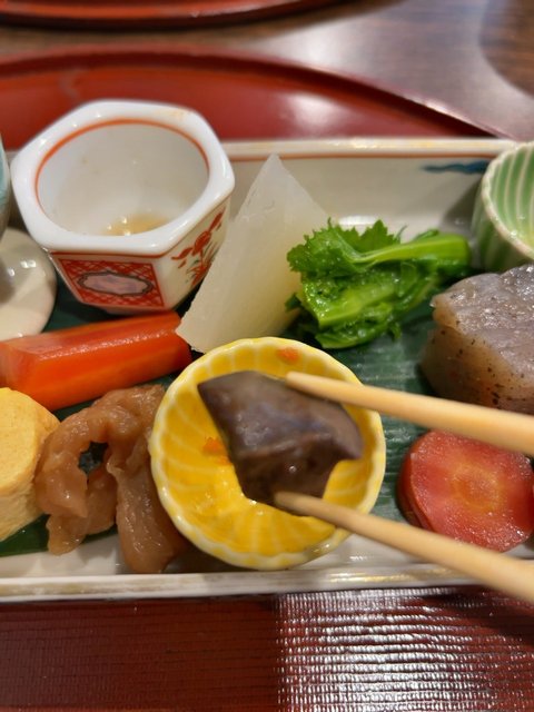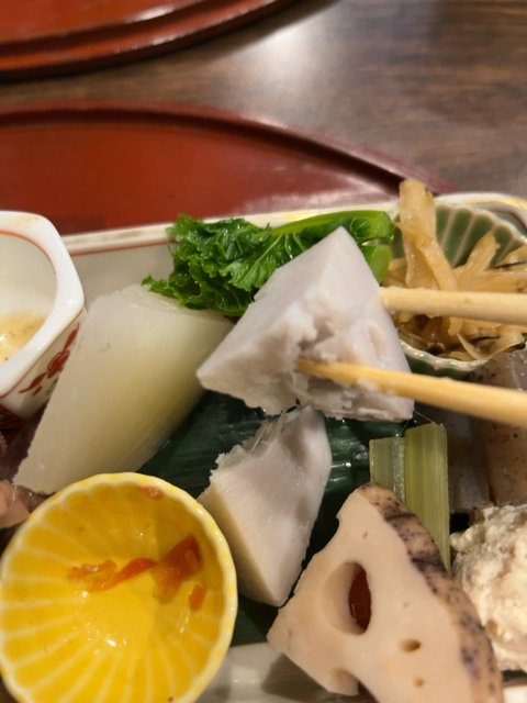 季節の野菜もふんだんに使用され、名残りの聖護院大根、海老芋、金時人参などの根菜類から、春を意識した菜花、蕗など。ポテサラもありました。どれも素材の風味がわかる上品な味つけで、京料理のベースそのもの。